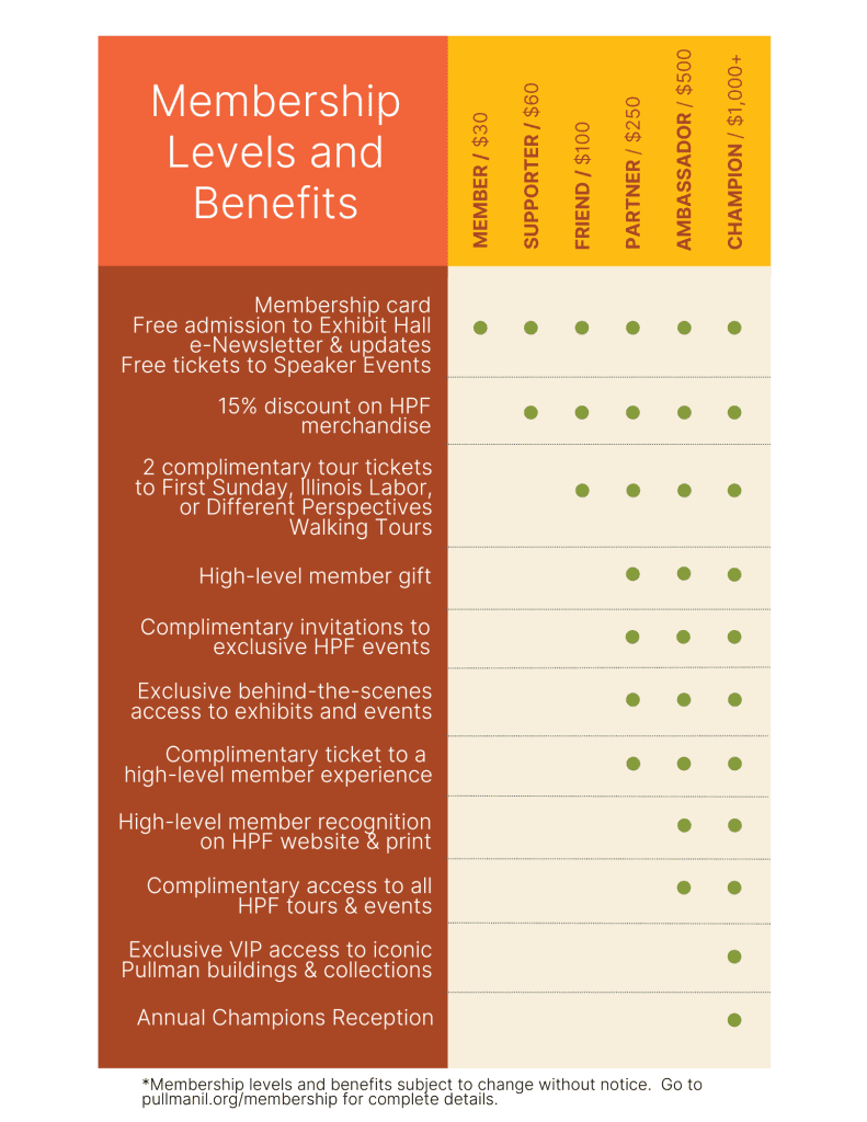 That’s where the Historic Pullman Foundation comes in. As the official friends group for the national park, HPF provides essential support for educational programs, vital projects, and events that bring Pullman’s powerful stories to life for thousands of visitors each year.