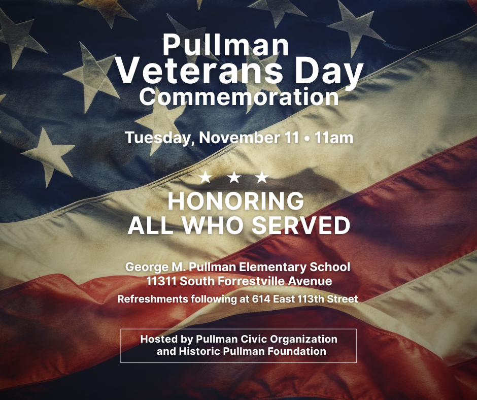 November 11 @ 11:00 am - 12:30 pm Pullman Veterans Day Commemoration George Pullman Elementary School