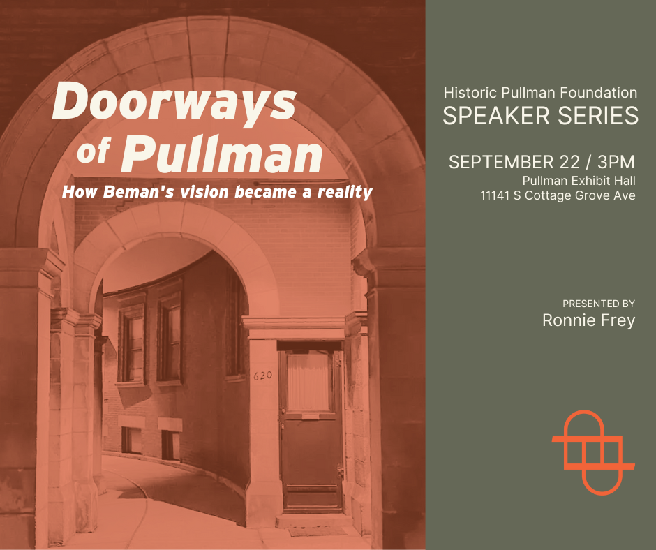September 22, 2024 @ 3:00 pm - 4:30 pm HPF Speaker Series: Doorways of Pullman HPF Pullman Exhibit Hall 11141 S. Cottage Grove Ave., Chicago, IL, United States $10